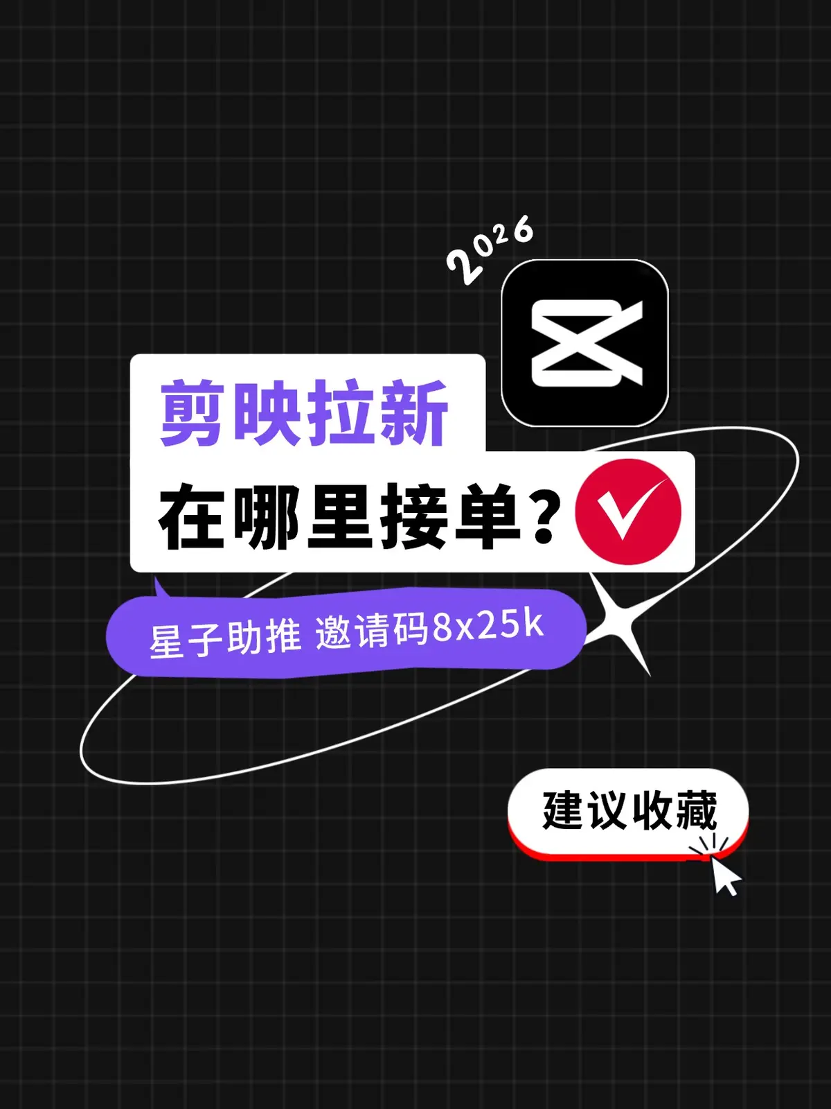 剪映拉新保姆级教程星子助推官方入口+全流程(附 8 元/单)宝子们!2026 剪映拉新终于找到官方靠谱入口了!亲测星子助推是剪映认证的一级服务商,8 元/单顶格佣金,零成本就能做,学生党/宝妈/副业党直接抄作业✅第一步:找官方入口:星子助推打开微信搜「星子助推」小程序,不用下载 APP,微信里直接操作!✅第二步:注册+填邀请码点“新用户注册”填手机号+验证码,必须填官方邀请码8x25...